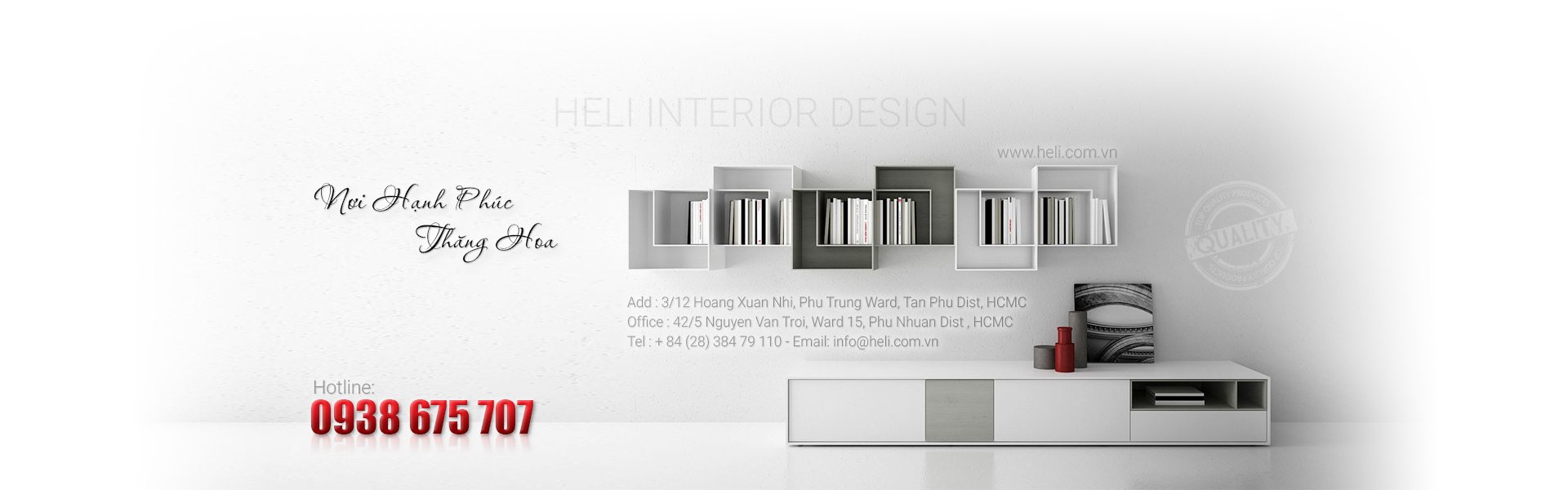 HELI INTERIOR DESIGN chuyên thiết kế, trang trí và thi công nội thất trên nhiều hạng mục công trình như showroom, văn phòng, biệt thự và căn hộ cao cấp,.. Tiêu chí kinh doanh hàng đầu của chúng tôi là tạo ra sản phẩm nội thất độc đáo, cung cấp giải pháp tối ưu cho khách hàng và đảm bảo hoàn thành dự án theo đúng ý tưởng thiết kế, chất lượng và tiến độ đã đề ra.